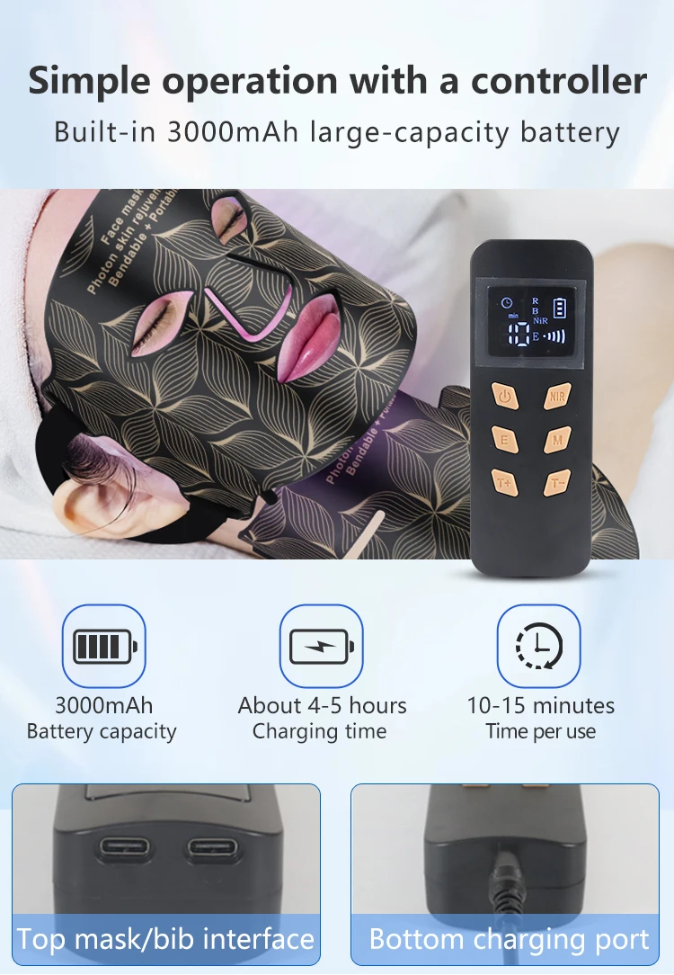 5- The LED face mask is high power, Have a long life,The mask is usually cleaned with alcohol.