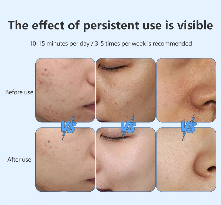 Blue light 440-465nm: suitable for sensitive skin,improving acne frequency and acne prone skin.