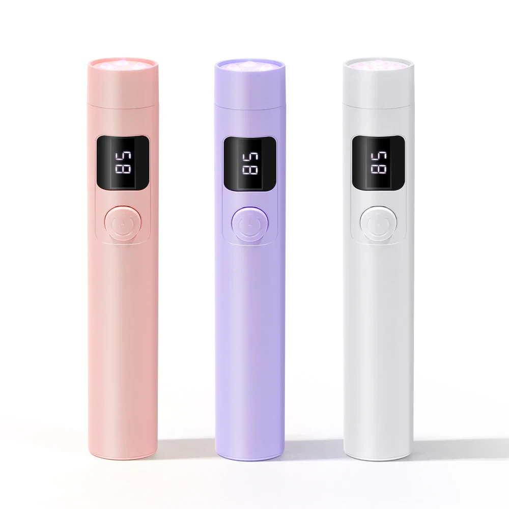 4.Portable Design:Pen Shape Design Mini Nail Light weighs only 28 grams,with a stylish and simple pen-shaped design,it can be easily put into your handbag and pocket;Enjoy the convenience of manicure anytime,LED display alowss you to check the power level at any time.